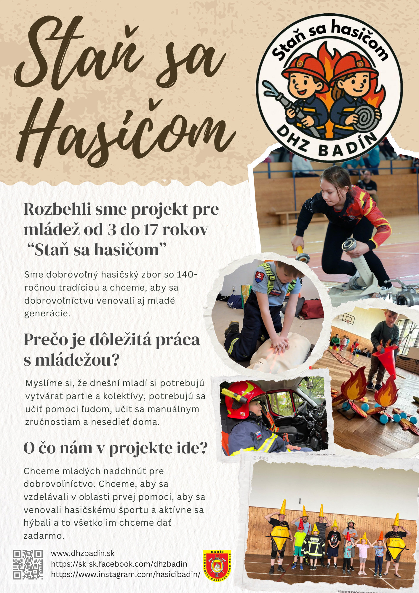 Pozývame všetky deti od 3 – 17 rokov na stretnutie, kde sa dozviete viac o živote dobrovoľného hasiča. Môžeš sa u nás naučiť prvú pomoc, lezenie, hasičinu, tímovú prácu. Čakáme Vás v nepárnu nedeľu o 15:00 hod. na ihrisku pri škole, v prípade nepriaznivého počasia v telocvični v kňažskom seminári v Badíne na ul. Banská.